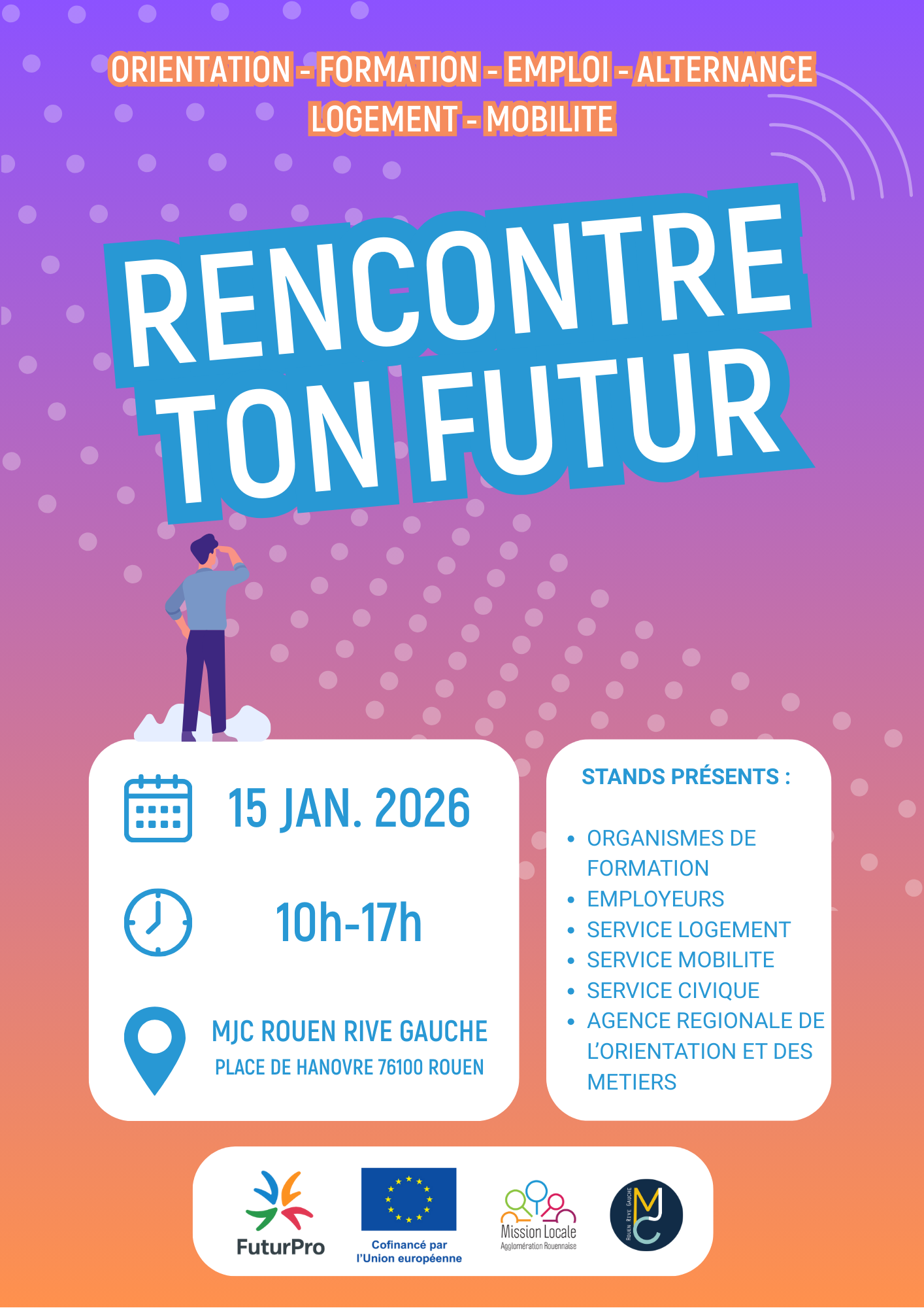 Cette journée a pour objectif de favoriser l’accès à l’emploi et à l’orientation des jeunes - Ouverte à tous les jeunes , même non inscrits à la mission locale de Rouen